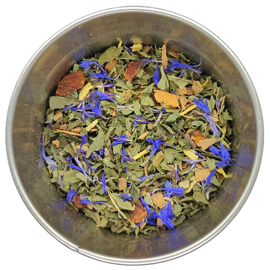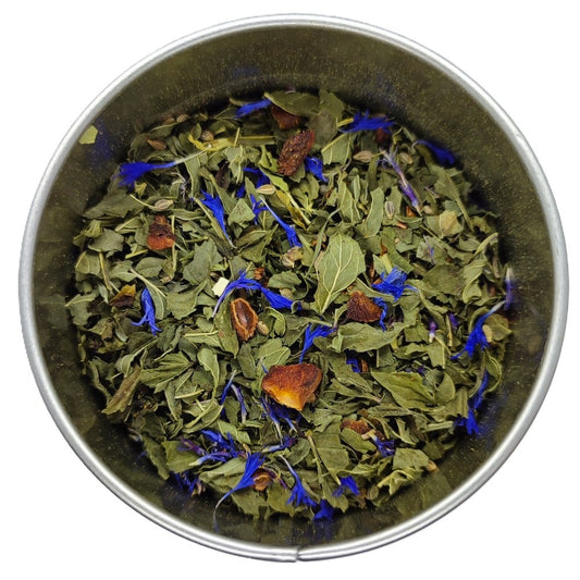 Tisane Philtre d'amour Bio : menthe poivrée, réglisse, cannelle, badiane, bleuet bleu